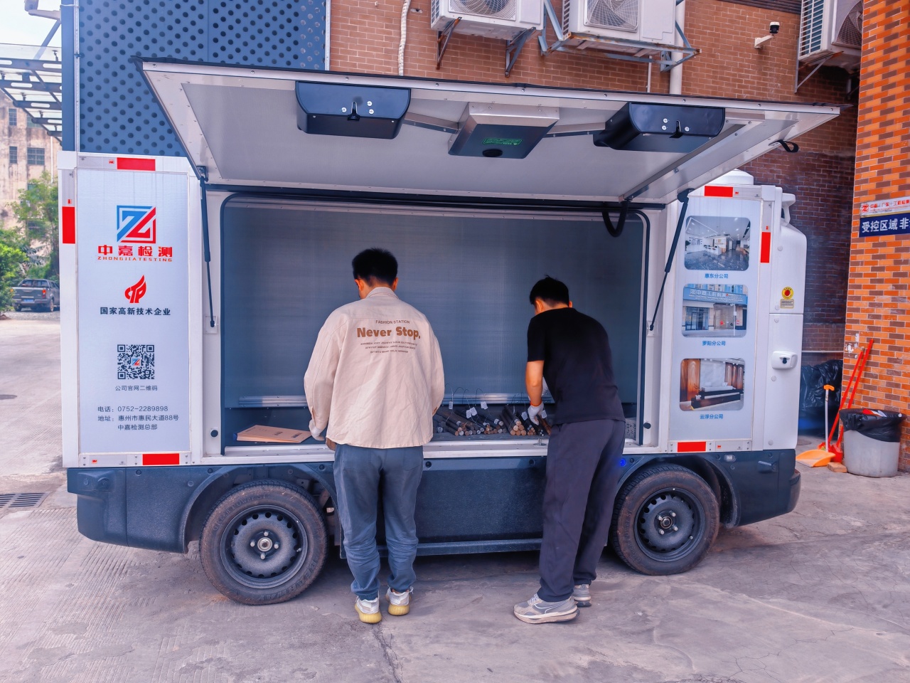 这一智能运输网络已覆盖总部至仲恺高新区、博西、罗阳、惠东、大亚湾五大分支机构,形成“一点辐射、全域联动”的高效物流体系。无人车具备长续航能力,无需休息、24小时待命,相比传统人工运输,将配送时效提升30%以上,人力成本降低40%,让专业技术人员能更专注于高价值的检测分析工作,全面提升了服务效率与核心竞争力。