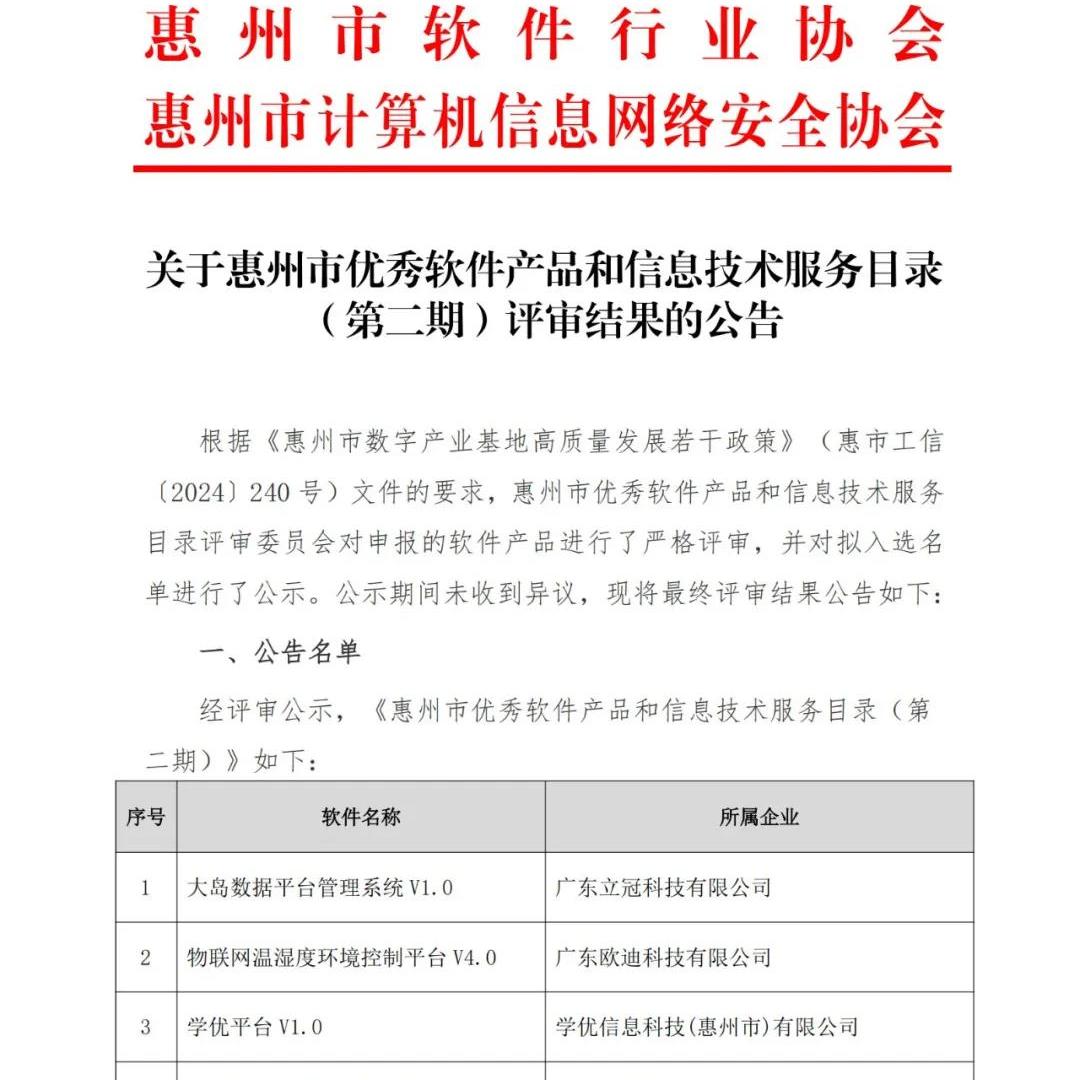 近日,惠州市软件行业协会与惠州市计算机信息网络安全协会联合发布了《惠州市优秀软件产品和信息技术服务目录(第二期)》评审结果公告。中嘉(广东)工程检测有限公司自主研发的“工程检测电子签章系统V1.0”,经严格评审与公示程序,获评优秀软件。点击链接查看详情: