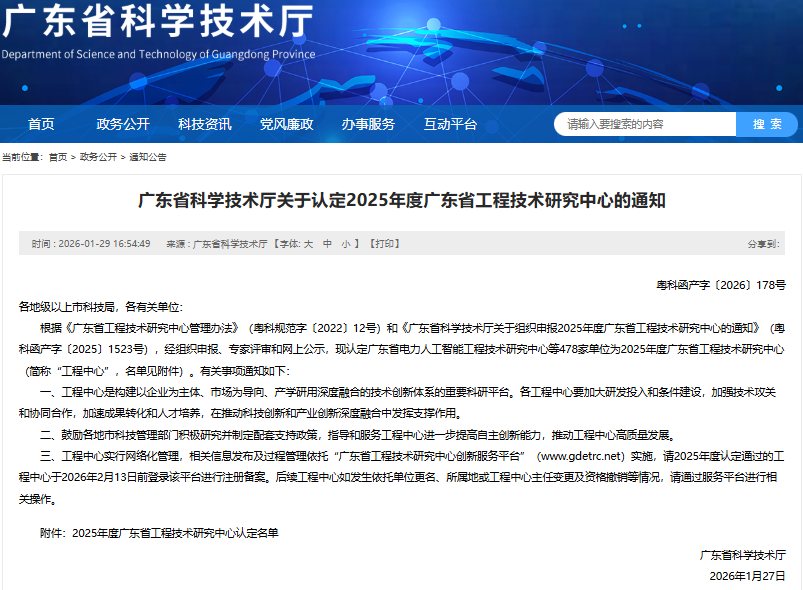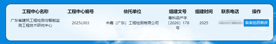 近日,广东省科学技术厅正式发布《2025年度广东省工程技术研究中心认定名单》,中嘉(广东)工程检测有限公司凭借在工程检测与信息化领域的深厚积累与创新实力,成功获批组建“广东省建筑工程检测与智能监测工程技术研究中心”(编号:2025L003)。该中心不仅是惠州市唯一获此认定的工程检测类工程技术研究中心,更是广东省内同行业仅有的两家之一,填补了惠州市在省级工程检测类工程技术研究中心的空白,公司将以这一省级高水平研发平台为新起点,驱动行业技术进步与智能化升级,为粤港澳大湾区工程建设高质量发展注入强劲动能。