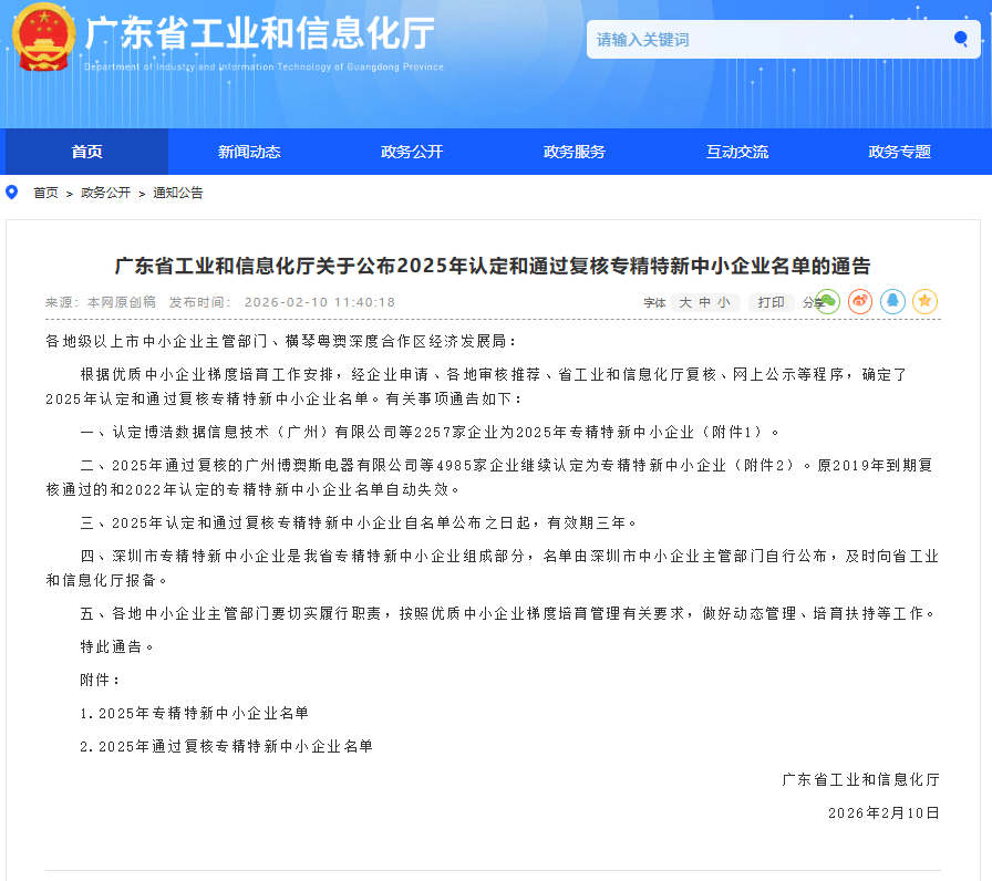 近日,广东省工业和信息化厅发布《2025年认定和通过复核专精特新中小企业名单的通告》,中嘉(广东)工程检测有限公司(下称“中嘉检测”)凭借扎实的技术创新能力、深耕工程检测领域的专业沉淀及稳定的经营发展质效,顺利通过专精特新中小企业复核,持续保有该项省级资质认定。这一成果是广东省主管部门对公司坚持“专业化、精细化、特色化、新颖化”发展路径的肯定与权威印证。